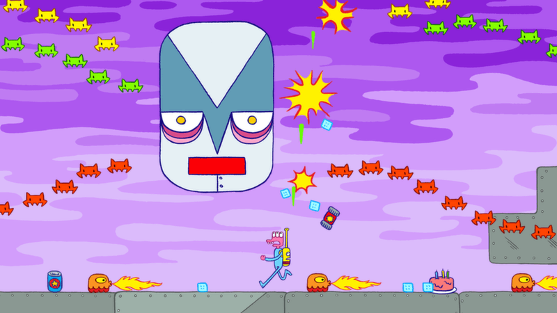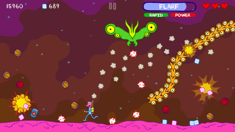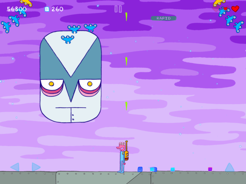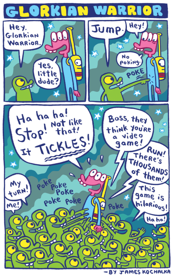 Glorkian Warrior: The Trials of Glork is a collaboration between acclaimed comic book artist James Kochalka and indie game studio Pixeljam. It’s a unique hybrid of Galaga-style shoot ‘em up, simple platforming action and Saturday morning cartoon. Help Glorkian Warrior defend his asteroid against an endless onslaught of alien invaders, and be prepared for somewhat unexpected results…